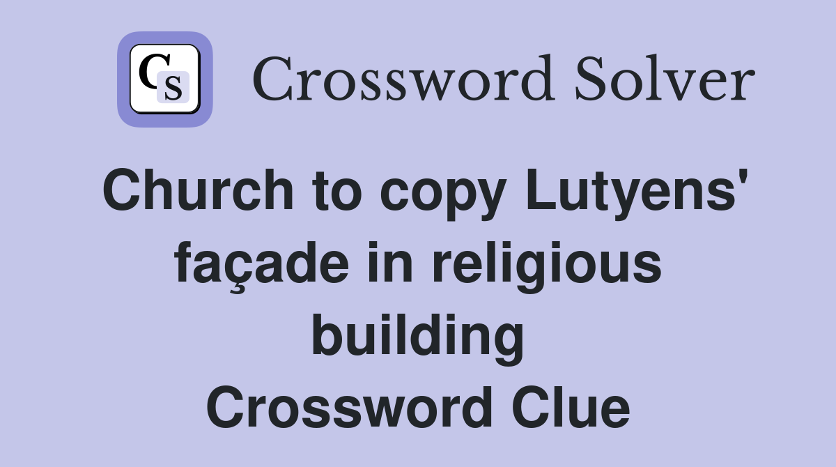 Church to copy Lutyens' façade in religious building Crossword Clue Answers Crossword Solver